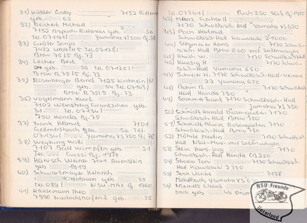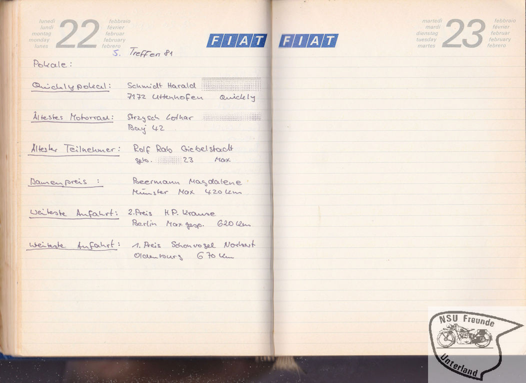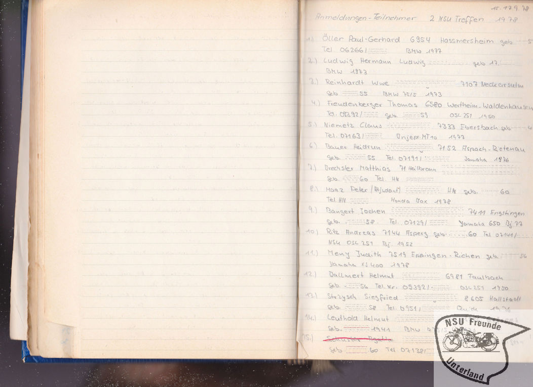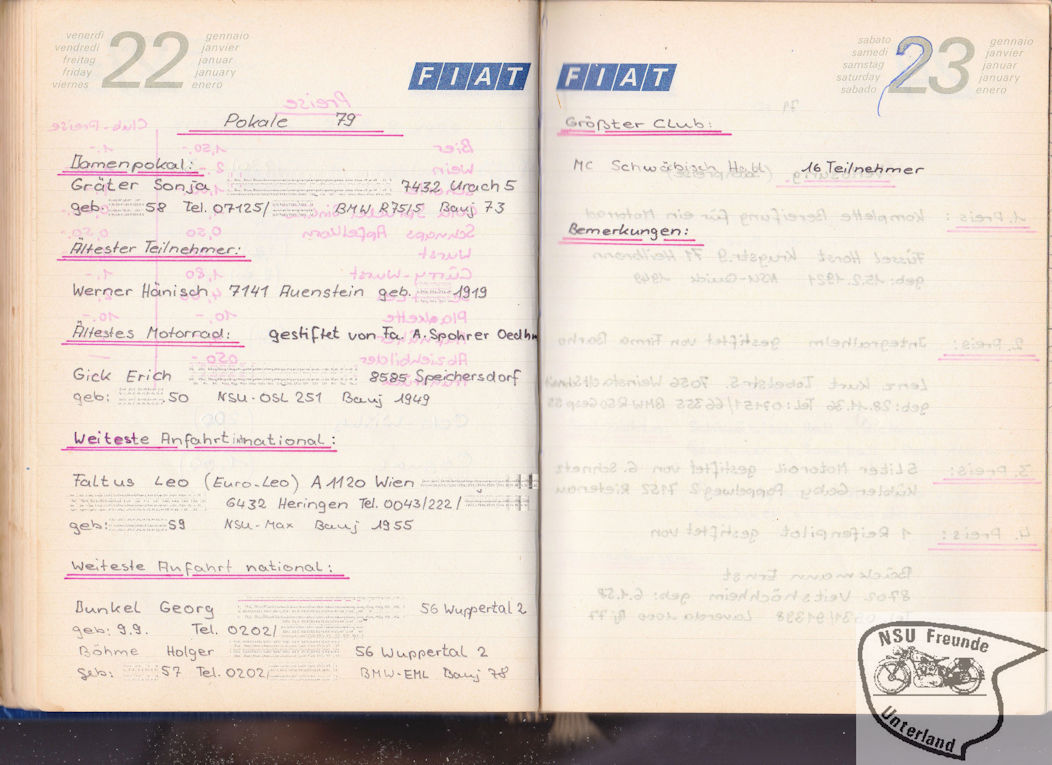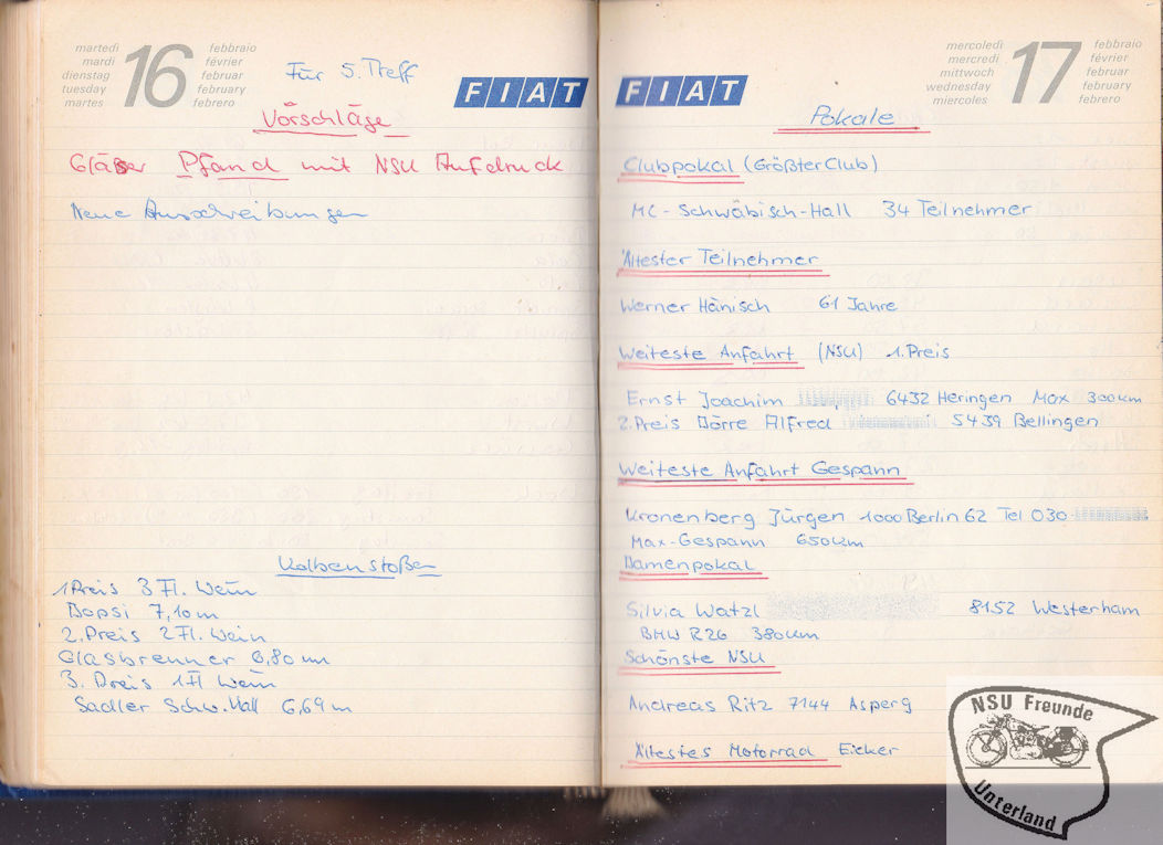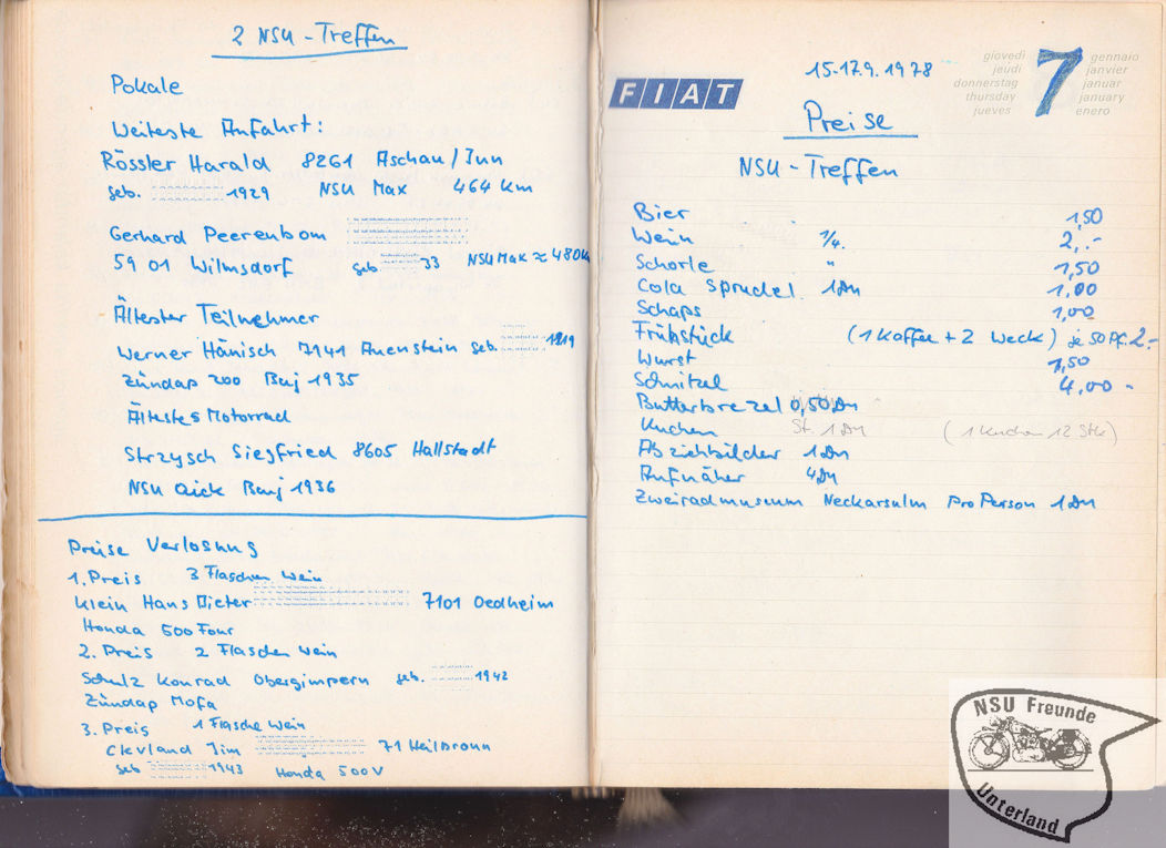 NSU-Motorradfreunde Unterland - Teilnehmer, Pokale, ...