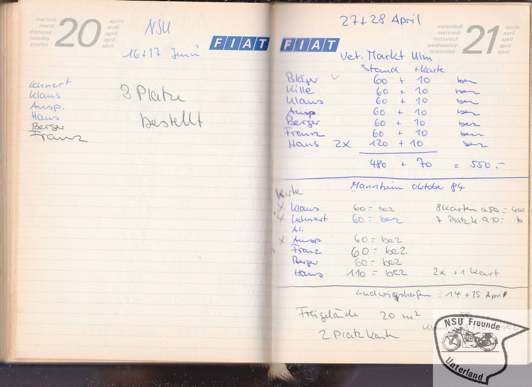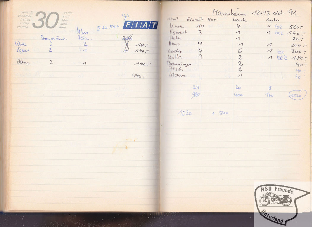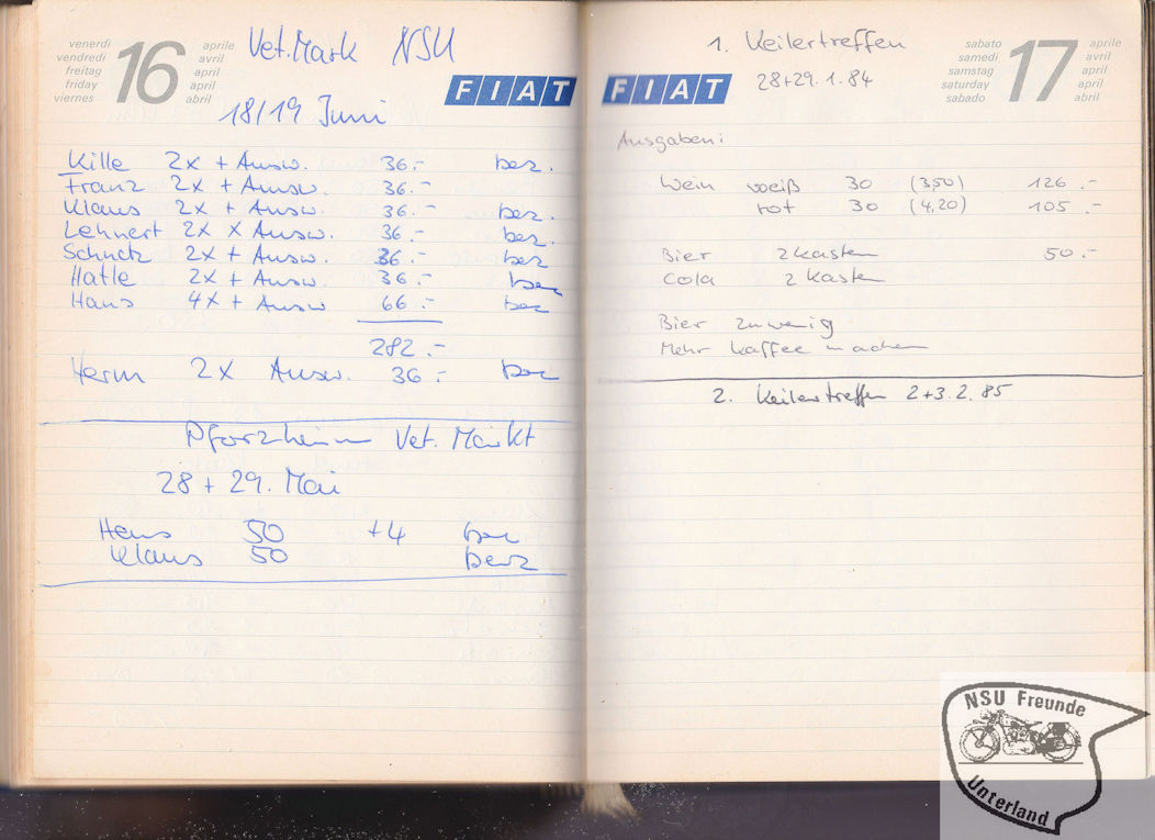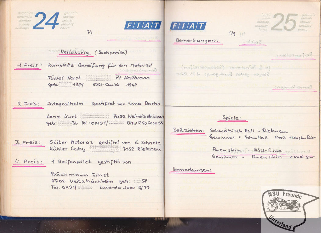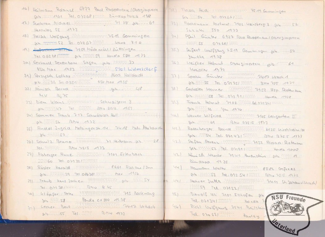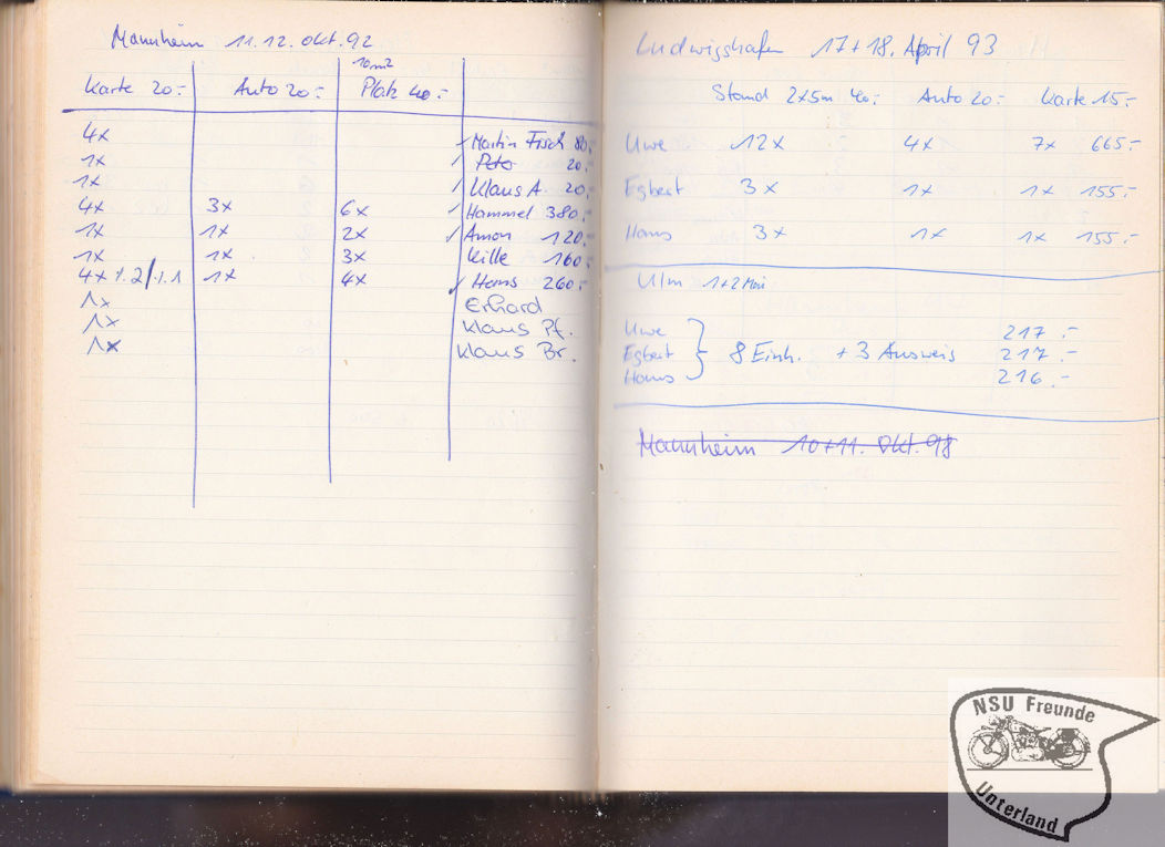 NSU-Motorradfreunde Unterland - Teilnehmer, Pokale, ...