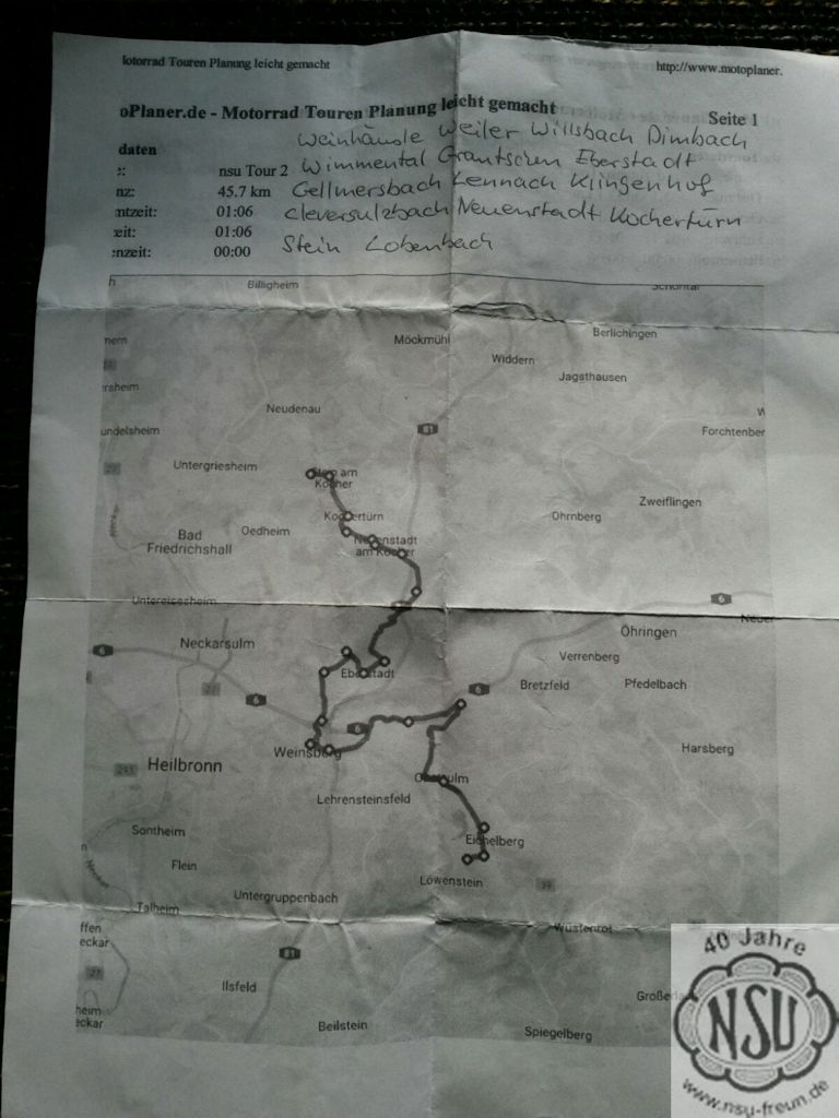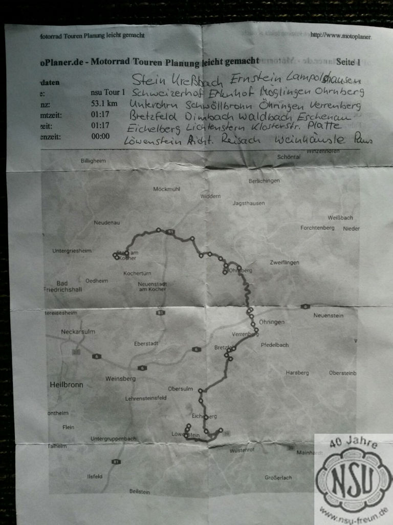 und anderen Aktivitäten der NSU-Motorradfreunde Unterland